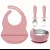 4PC Silicone Feeding Set for Kids – Non-Slip Bowl, Fork, Spoon & Leakproof Bib