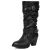 Women’s Mid-Calf Pleated Western Boots – Buckle Detail, Low Heels, Plus Sizes